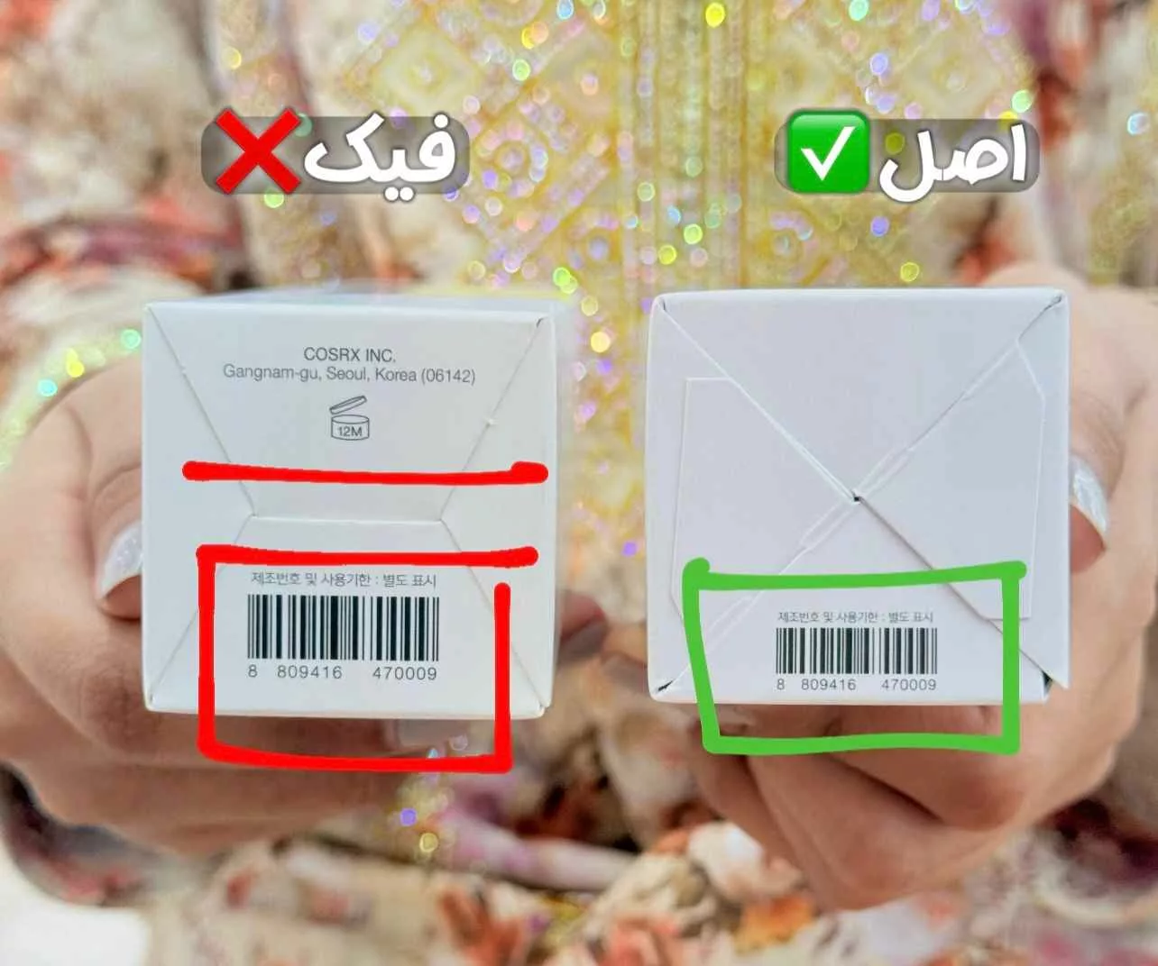 اسکن بارکد محصول و مقایسه بستهبندی با نمونههای رسمی سایت COSRX، دقیقترین روش است.