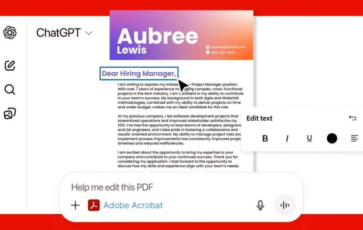 این ادغام، سه سرویس کلیدی ادوبی را در بطن مکالمات ChatGPT قرار میدهد: