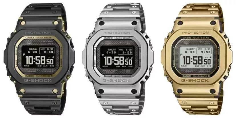 - GMW‑BZ5000D‑1: نقرهای استاندارد با قاب و صفحه نمایش مشکی، نماد کلاسیک فولاد.