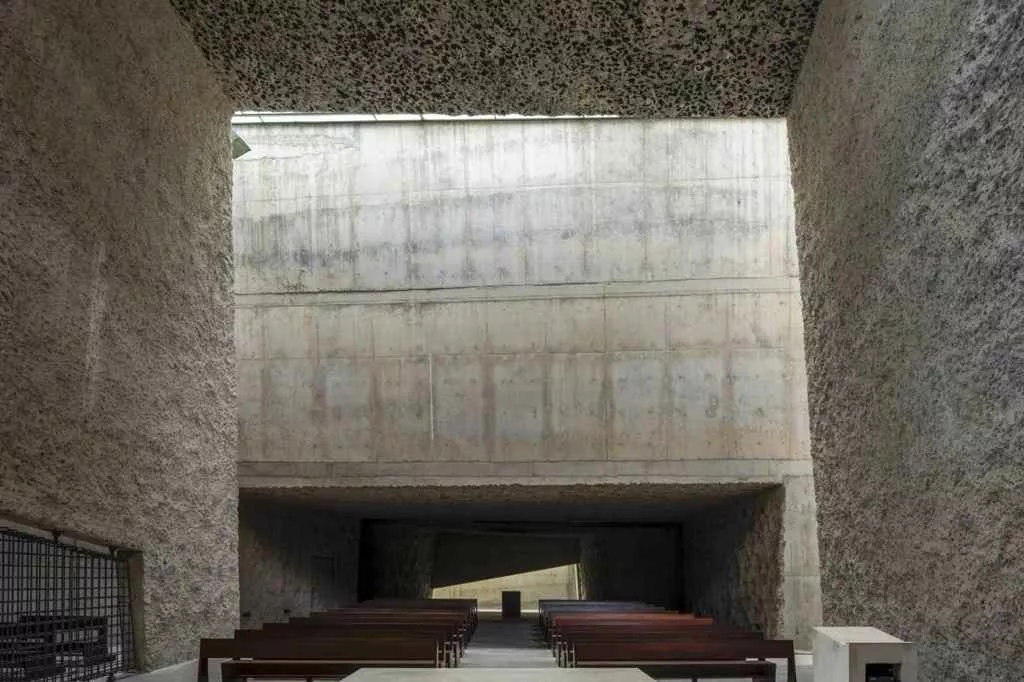 منیس اغلب از این بتن به عنوان “پوست دوم جزیره” یاد میکند که توانایی تحمل شرایط محیطی خشن اقیانوسی را دارد. فرم حجمی سازه، بهجای تقلید از فرمهای سنتی کلیسایی، شکلی هندسی و غیرمنتظره دارد که شبیه به یک کوه تراشیده شده به نظر میرسد.