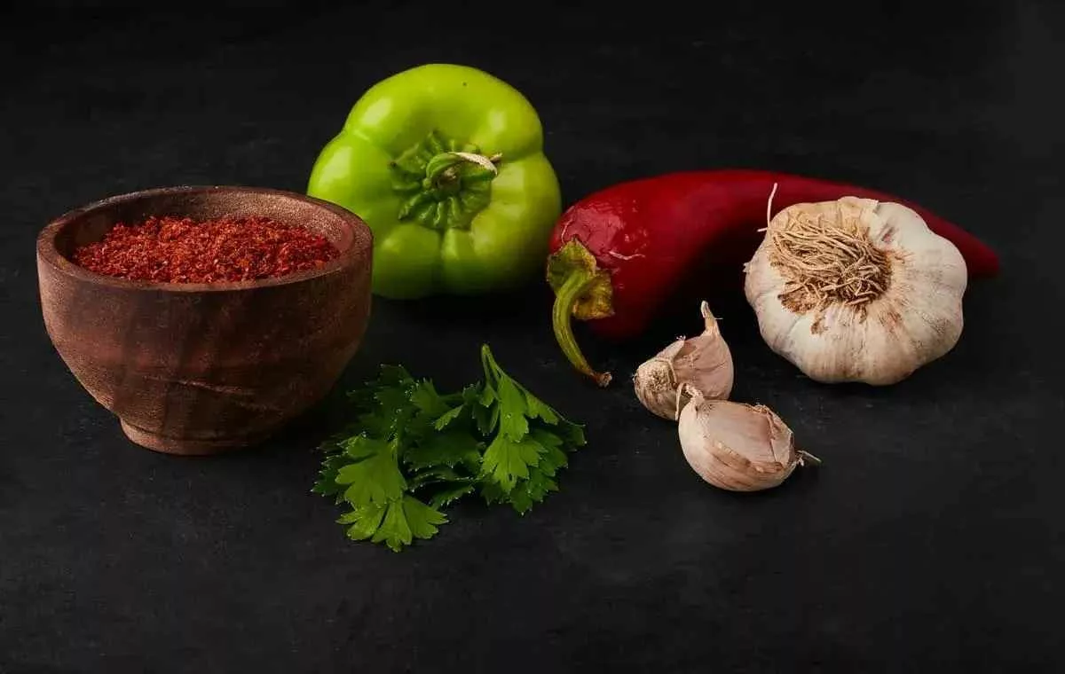 در کنار سبزیها، هویج و سیر را هم بشویید، پوست بگیرید و آماده کنید. فلفل تند را نیز تمیز بشویید و در صورت تمایل به تندی بیشتر، دانههایش را نگه دارید.