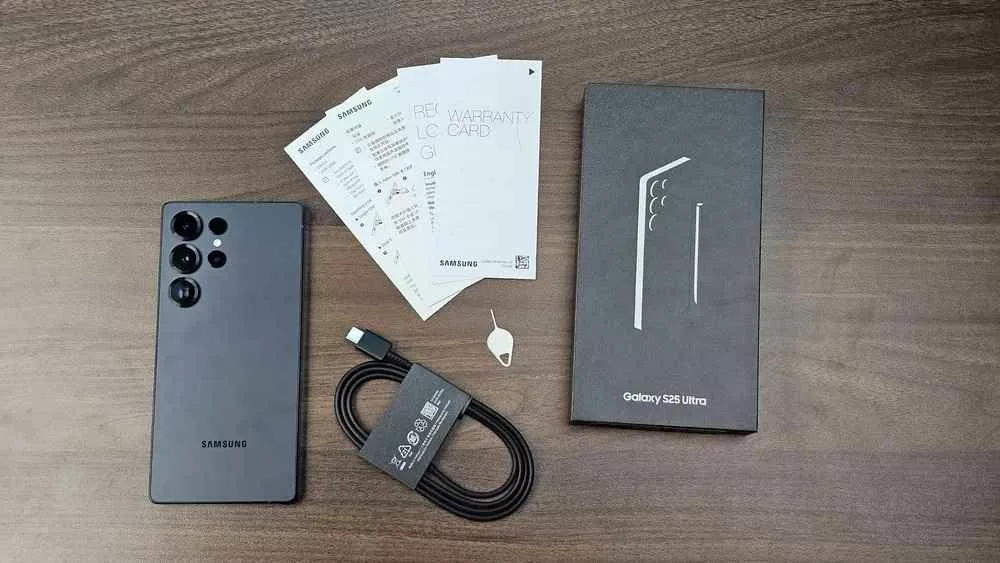 - گلکسی S25 اولترا: فقط کابل USB-C و سوزن سیمکارت.