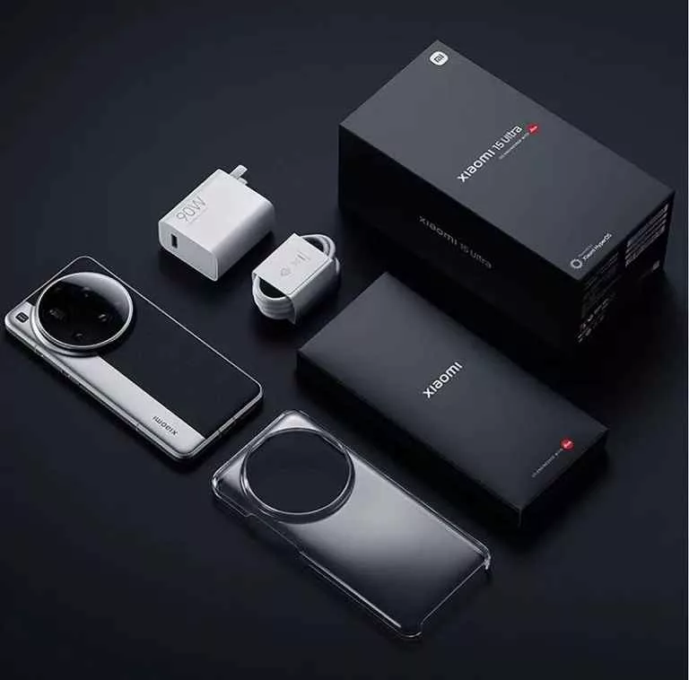 - شیائومی 15 اولترا: آداپتور شارژ سریع ۹۰ وات، کابل USB-A به USB-C، قاب سیلیکونی، سوزن سیمکارت.