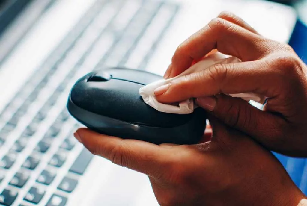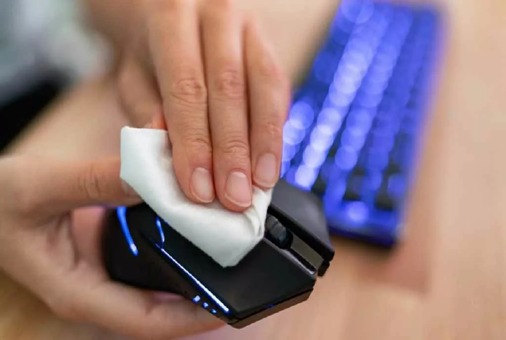 - ضدعفونی قبل و بعد از استفاده (اجباری): کارمندی که از موس استفاده میکند، باید قبل از شروع کار، با استفاده از دستمالهای ضدعفونی کننده مخصوص سطوح (که حاوی IPA یا ترکیبات مشابه هستند)، موس را کاملاً پاک کند. این کار به طور موثری باکتریها و ویروسهای منتقل شده توسط کاربر قبلی را از بین میبرد.
