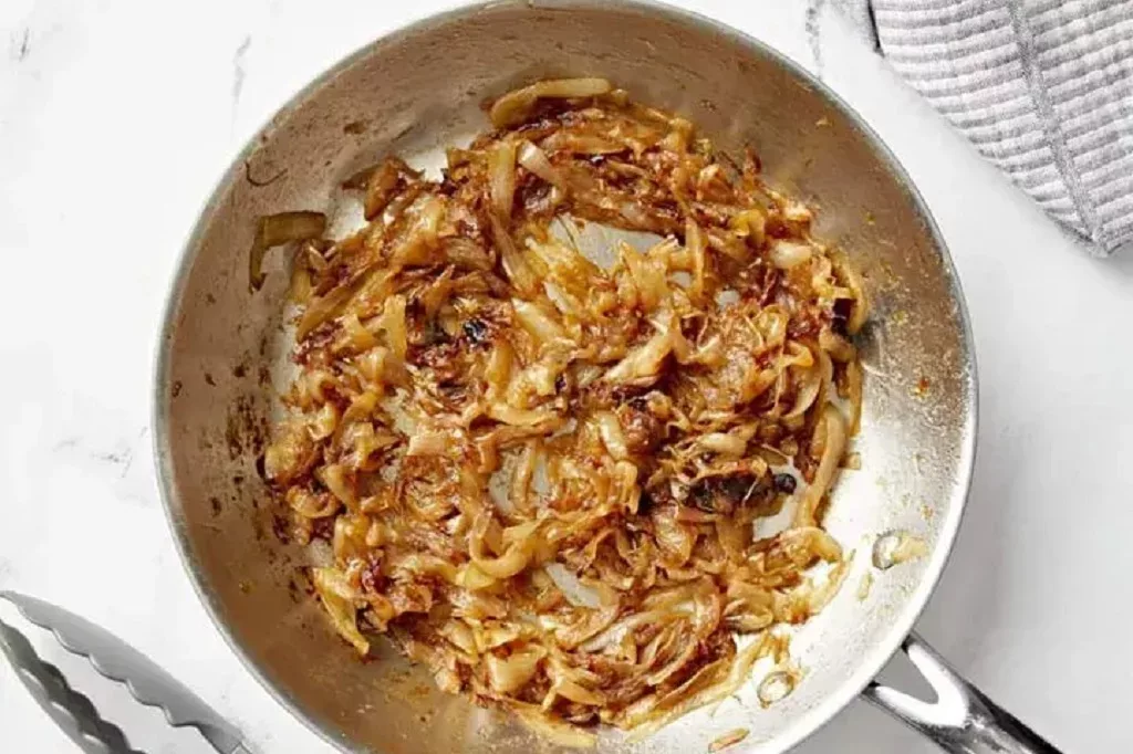 تفت دادن پیاز و زردچوبه: در یک تابه جداگانه، پیازها را خرد کرده و در روغن تفت دهید تا طلایی شوند. سپس، زردچوبه را اضافه کنید و کمی تفت دهید تا عطر آن آزاد شود.