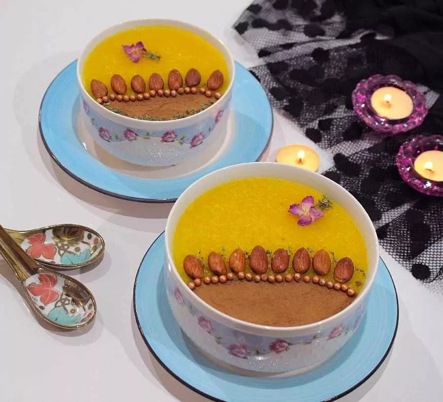 - چاشنیهای رنگ و عطر: پودر دارچین برای کشیدن نقشهای ساده یا پیچیده روی سطح، گل محمدی خشک برای نقاط رنگی و عطر ملایم، و کمی زعفران غلیظ برای لکههای طلایی که جلوهی خاصی ایجاد میکنند.