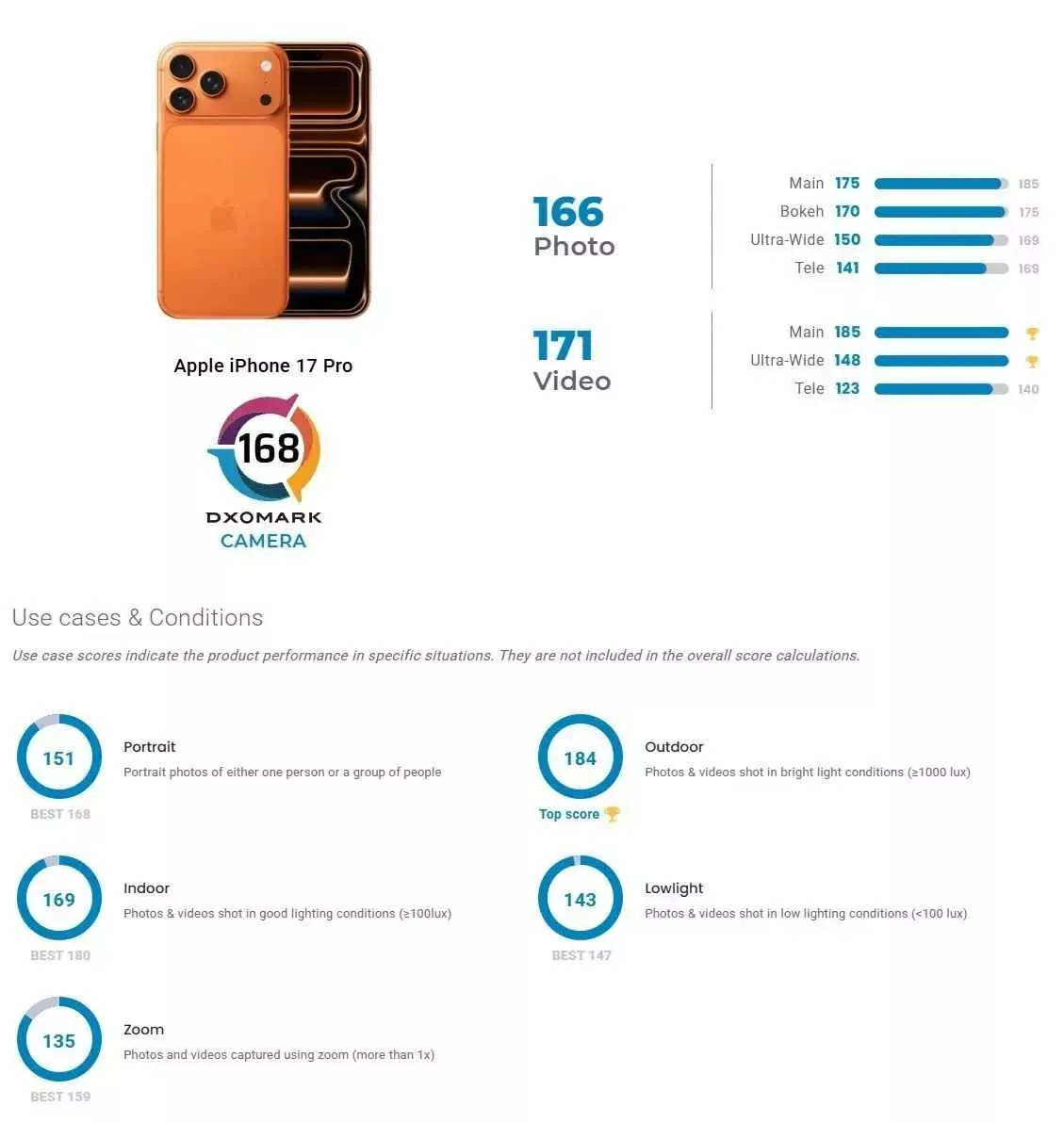 در بخش Photo، ویوو X200 اولترا با امتیاز ۱۷۳ جلوتر از آیفون با ۱۶۸ ایستاد. این فاصله پنج امتیازی در حوزههایی مانند: