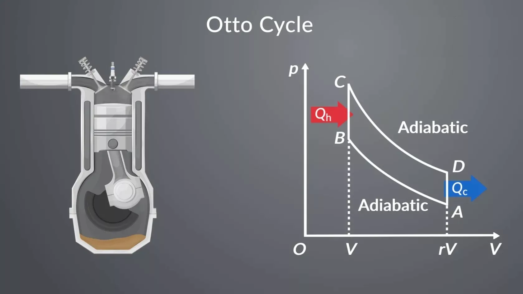 در یک چرخه اتو ایدهآل، مراحل به شرح زیر است: