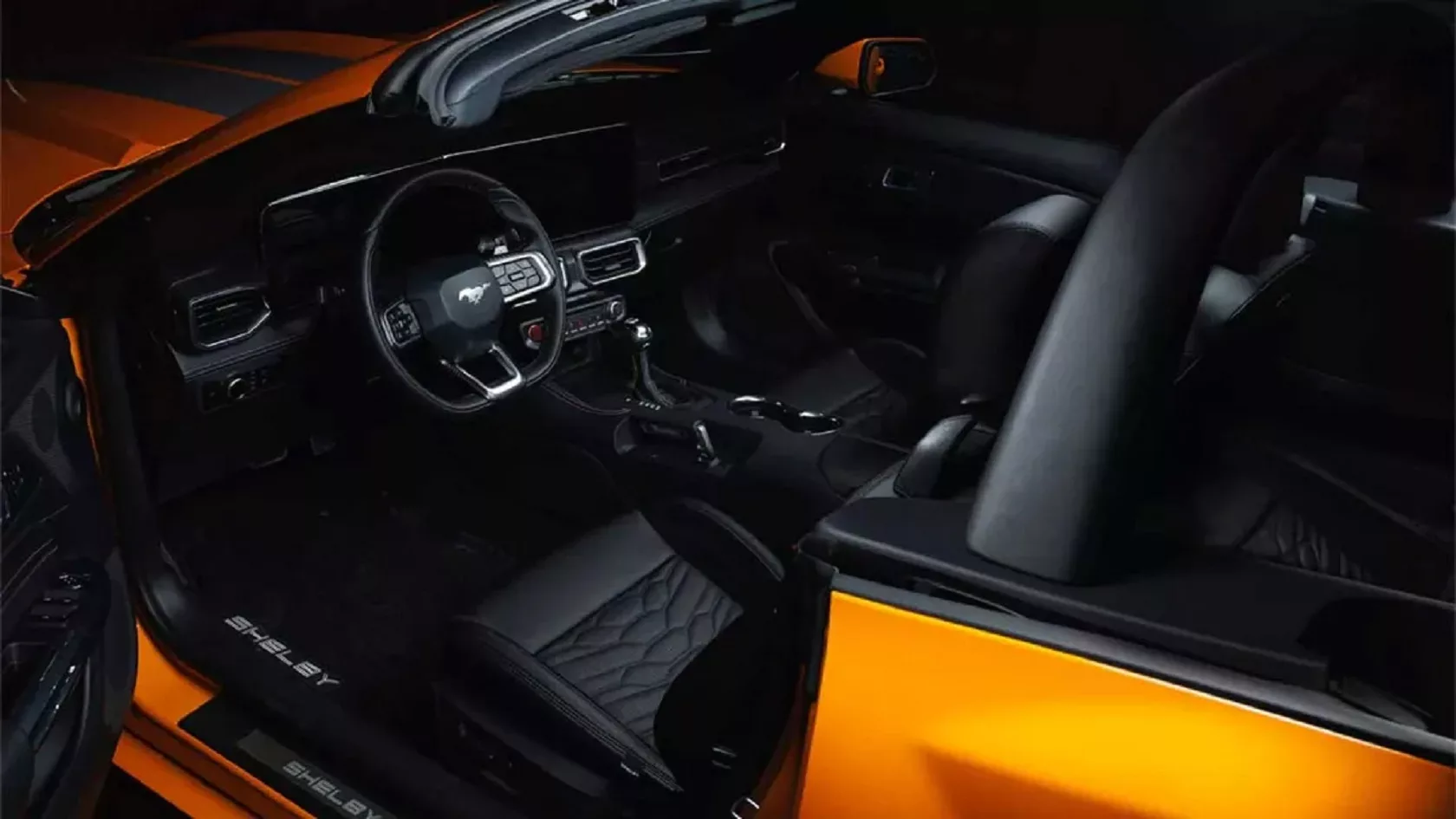 - جزئیات شلبی: استفاده از نشانهای حک شده مار کبری بر روی غربیلک فرمان، دستهدنده و کنسول مرکزی، بر هویت خاص این مدل تأکید دارد.