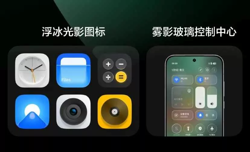 در این معرفی، طراحی جدید تحت عنوان Light and Shadow Glass رونمایی شد؛ سبکی که محیط نرمافزاری گوشی را به فضایی شفاف و صیقلی مشابه شیشه مات و نوری پراکنده در پسزمینه تبدیل میکند. طراحی جدید تلاش دارد مرز بین دنیای دیجیتال و تجربه بصری طبیعی را از بین ببرد و به کاربر حس لمس واقعی شیشه را القا کند.
