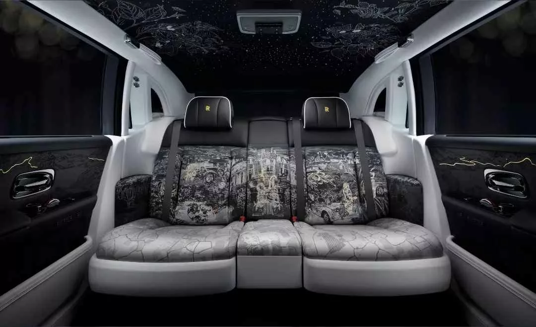صندلیها از چرم طبیعی با دوخت دستدوز ساخته شده و طرح پشت آنها از مدل تاریخی Phantom of Love (1926) الهام گرفته است – خودرویی که برای شاهزاده هندی طراحی شد و نماد عشق جاودانه بود.