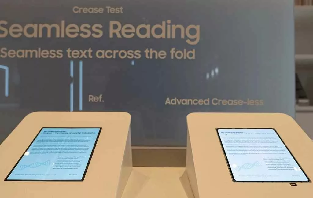 رونمایی اصلی در غرفه سامسونگ دیسپلی در لاس وگاس انجام شد. در یک دمو بسته و کنترل شده، نمونهای از یک پنل 7.9 اینچی که قابلیت تا شدن کامل را داشت، به نمایش گذاشته شد. نکته حیرتانگیز، صفحه نمایش روشن و بدون هیچ گونه انحنای بصری در محل تا شدن بود.