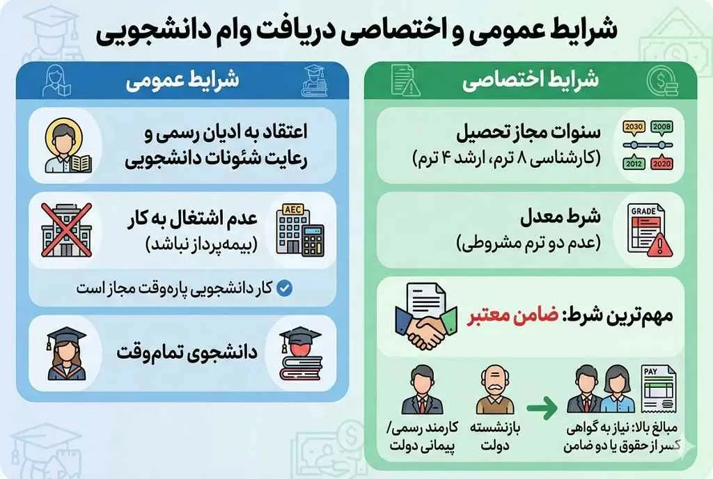 - هدف تخصصی: این وامها منحصراً برای مقاصد آموزشی و رفاهی دانشجویان طراحی شدهاند.