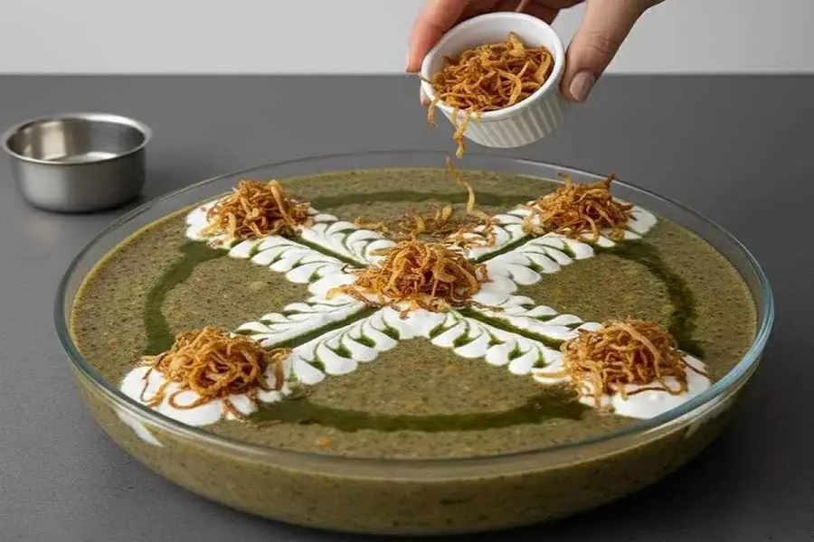 🌿 مرحلهی چهارم: اضافهکردن ترخینه، عدس و سبزی معطر