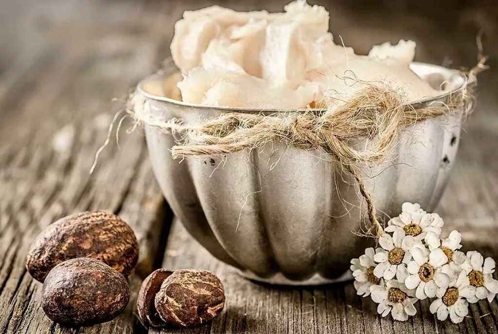- شی باتر (Shea Butter): طلای آفریقا، شی باتر از دانههای درخت شی به دست میآید و سرشار از ویتامینهای A و E، اسیدهای چرب ضروری (مانند اولئک اسید و استئاریک اسید) و آنتیاکسیدانهاست. این ماده دارای خواص ضدالتهابی، مرطوبکننده قوی، ترمیمکننده و ضد پیری است. شی باتر به راحتی جذب پوست میشود و به حفظ رطوبت، کاهش خشکی، بهبود خاصیت ارتجاعی و کاهش التهابات پوستی کمک میکند.