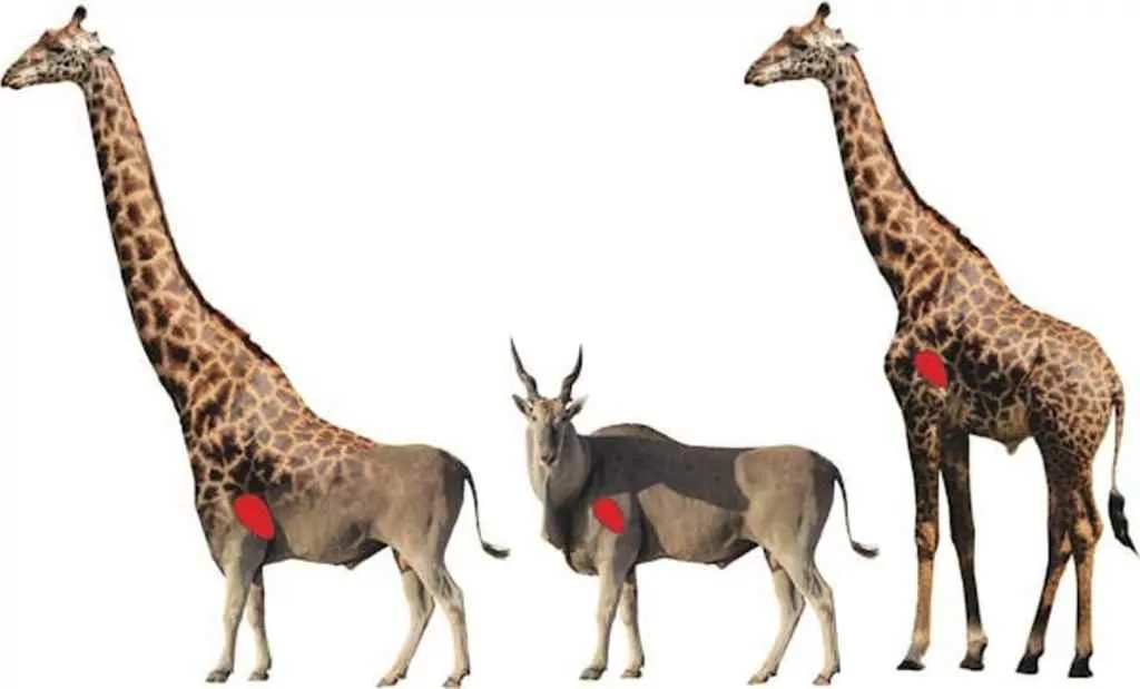 این جایگاه طلایی قلب، که توسط پاهای بلند تضمین شده است، موجب شد تکامل بتواند طول گردن را بدون شکست فیزیولوژیکی افزایش دهد و محدودیت انرژی را برای زیستن در ارتفاع جابجا کند.