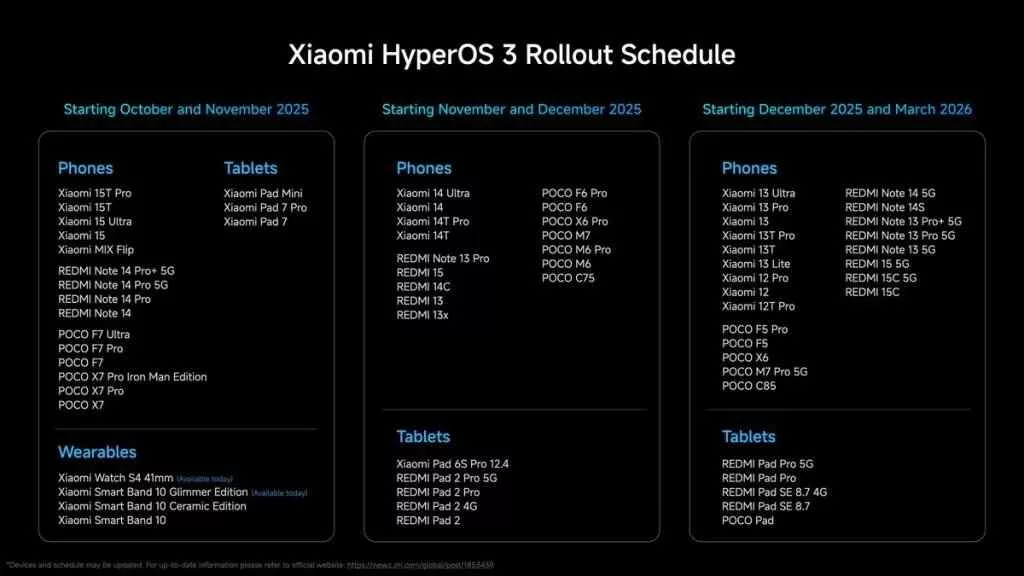 🗓 نقشه راه زمانبندی انتشار HyperOS 3 در جهان